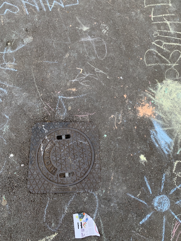 This walk was done with my dog friend Wrigley. I started in the usual manner of a dérive but added some additional rules on the walk. I would only stop when Wrigley stopped, and I would allow him to lead the way, deciding at each intersection which way I would go next. I made a point of observing the things that he seemed interested in, which in many cases, were bits of grass growing through the pavement as well as posts, pipes and tree trunks coming out of the ground.